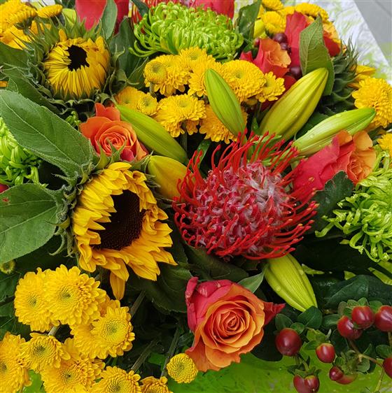 Please note that due to the seasonal availability of flowers it may be necessary to vary individual stems from those shown. Our skilled florists may substitute flowers for one similar in style, quality and value. Where our designs include a sundry item like a vase or basket it may not always be possible to include the exact item as displayed. If such an occasion arises we will make every effort to replace the item with a suitable alternative.
